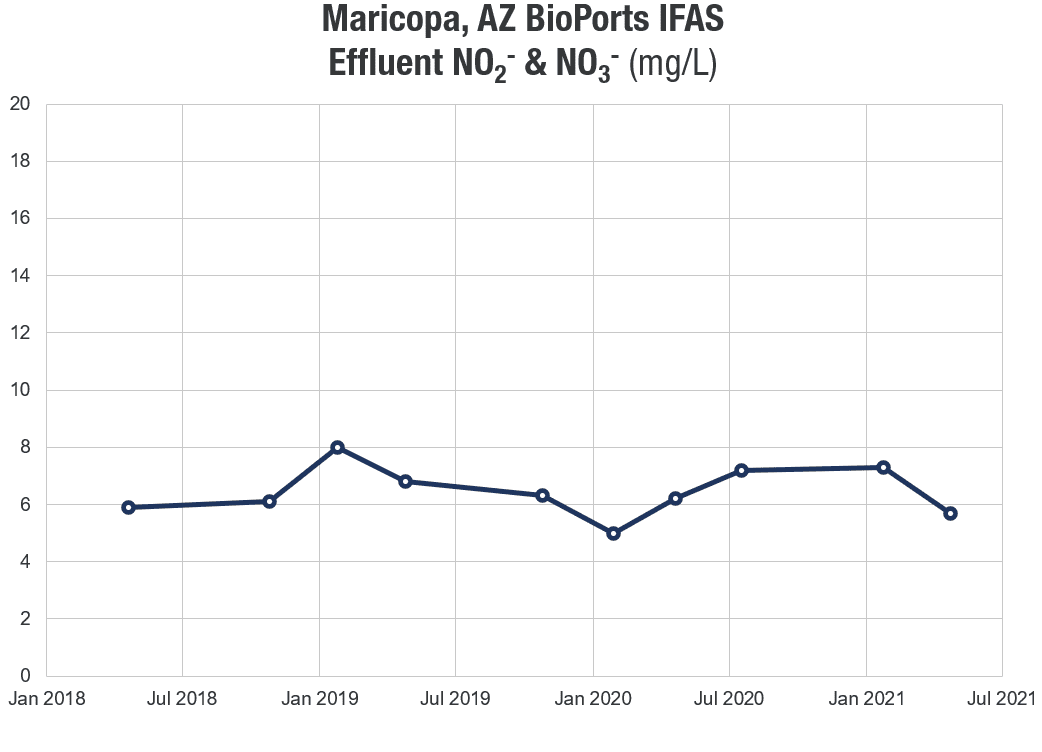 As a result, BioPorts™ IFAS can accommodate rapid increases in loading or flows. Because there is ample surface area for biomass expansion and basin mixing effectively distributes the biofilm-laden media, loading and oxygen throughout, BioPorts IFAS installations are able to address high strength or highly-variable loading more effectively than traditional activated sludge basins.
