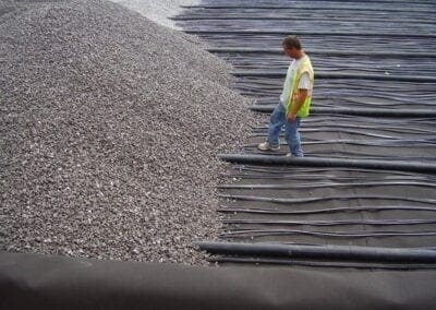 The gravel bed provides required surface area for BOD reducing heterotrophic bacteria to attach and grow. Air introduced through Nexom’s FBA® LINEAR aeration system provides a minimum of 2 mg/L disolved oxygen throughout the bed. The design and operation of the system is loading dependent as opposed to hydraulically limited. As a result, the process can handle a high flow at low BOD concentration (up to 1.2 MGD), a condition typically seen during spring thaw and summer operation, or the process can treat high influent BOD5 (>1000 mg/L) at low throughput to an effluent quality of 30 mg/L BOD5.