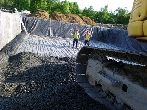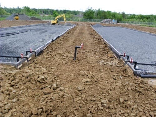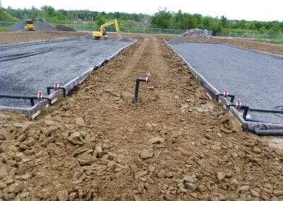 At Doaktown, two SAGR beds were constructed after the lagoons for tertiary treatment, providing additional BOD and TSS polishing. The SAGR consists of an aerated submerged aggregate bed, with a horizontal flow distributing influent wastewater across the bed.