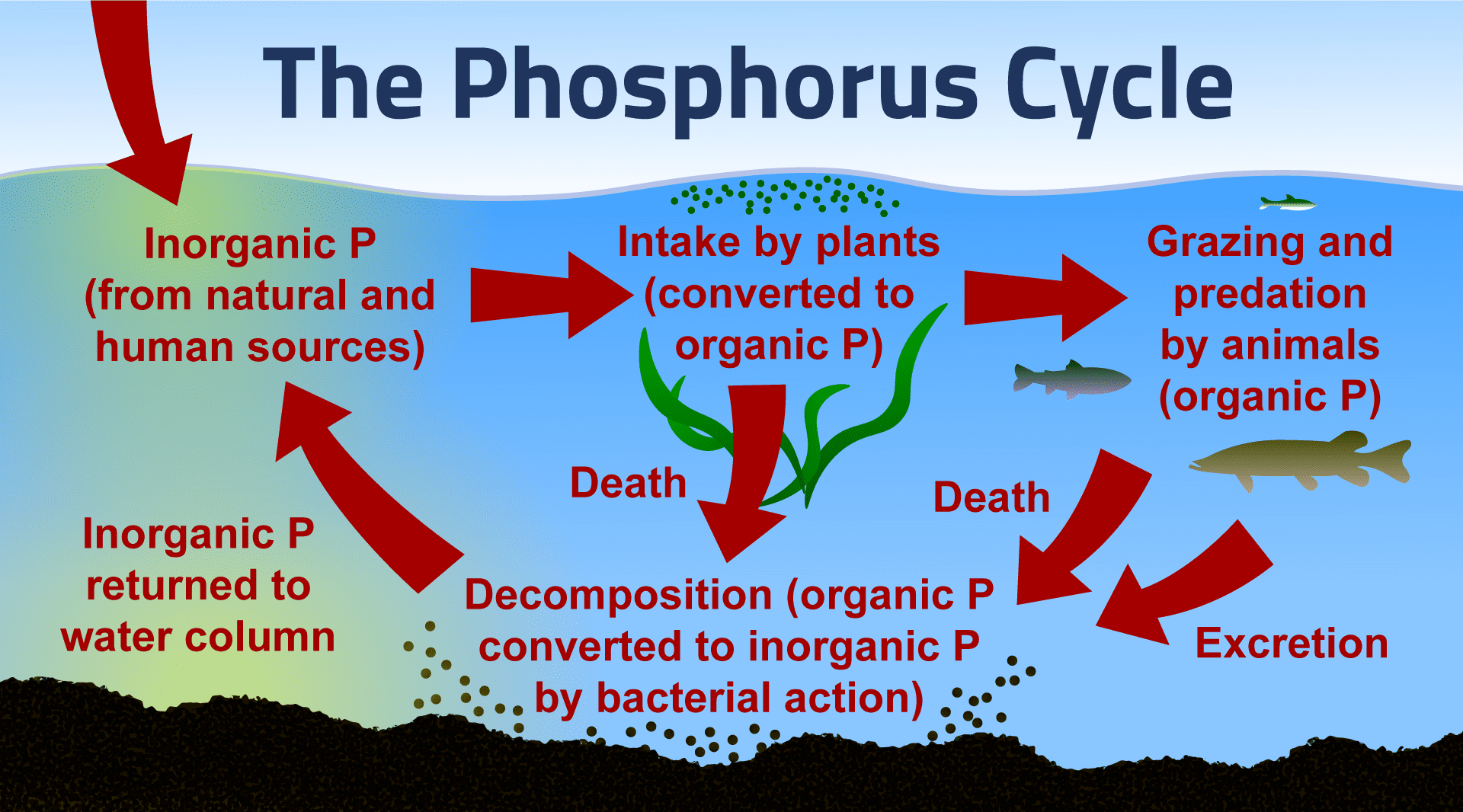 After all, while other contaminants like ammonia or nitrates can be converted into the same nitrogen gas which makes up most of the air around us, phosphorus doesn’t turn into a gas. Instead, it gets caught up in the phosphorus cycle.