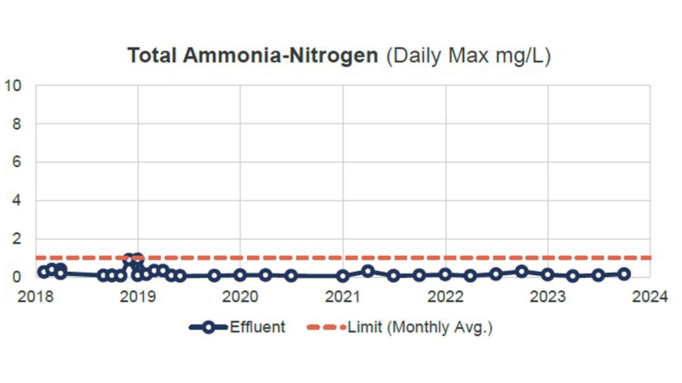 The facility is also maintaining an ammonia daily maximum effluent concentration of <0.5 mg/l since the Phase 1 upgrades.