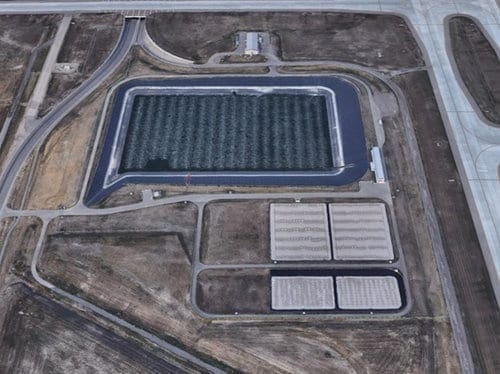 Aerating the new retention pond served two primary purposes – odor control and oxygen distribution for bacteria growth. In order to eliminate odors, engineers from YYC and Associated Engineering chose to install a Nexom optAER system, a pond-based wastewater treatment solution used in a wide spectrum of applications. Issues with odors had already occurred with the existing retention pond and YYC wished to avoid the same issue again. In comparison to conventional mechanical treatment facilities, optAER-enhanced retention ponds and lagoons maintain the simplicity of a lagoon system at a fraction of the costs to construct and operate. Aeration also provides internal sludge digestion, resulting in minimal long-term solids accumulation, and extending pond life.